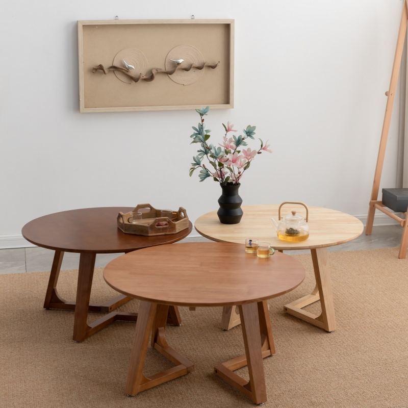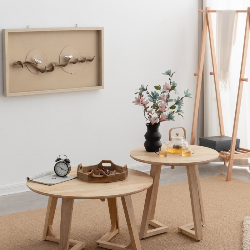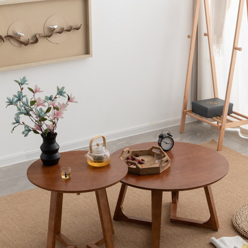 实木高低圆茶几